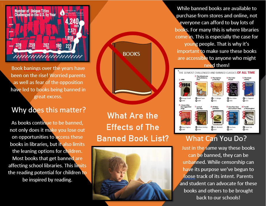This Graphic is based on the Essay that was written for English 252. The graphic is meant to break down and demonstrate what the long term effects of the banned book list are.